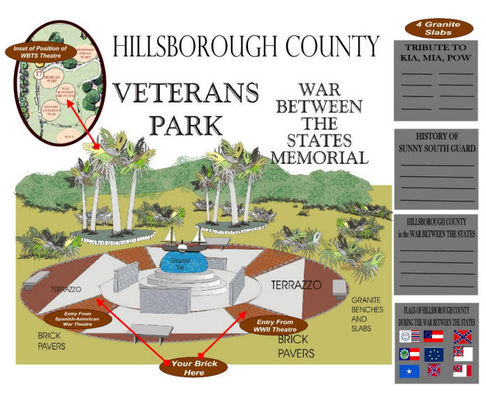 support for this project was accepted by the Commission. Over the past few years, plans have been under development for a world- class veterans park to honor the service of residents of Hillsborough County, Florida who made extreme sacrifices during each war in the County’s history (KIA, POW, etc.). But integral in the design is an opportunity to honor all Confederate Veterans from any State or locality (see below.) The County has committed great resources in converting the existing park and museum into a Veterans shrine...honoring all Veterans from all Wars, beginning with the Seminole War up to and including the Global War on Terror. The new park will attract thousands of residents and visitors each year to pay tribute to fallen heroes from our area into perpetuity. Upon its completion, the War Between the States (“WBTS”) theatre will receive appropriate and proper recognition in the mainstream of the civic landscape—forever.